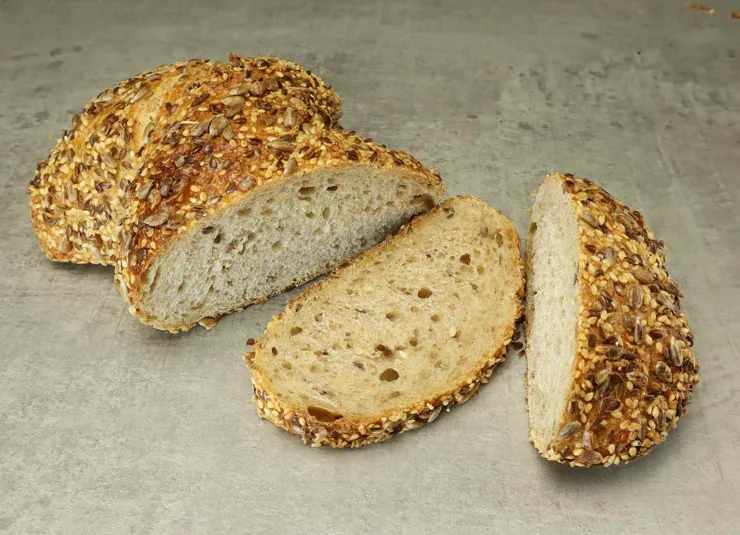 Die Kruste ist mit Leinsamen bedeckt und im Innern sind vorwiegend angenehm weiche Sonnenblumenkerne anzutreffen.
