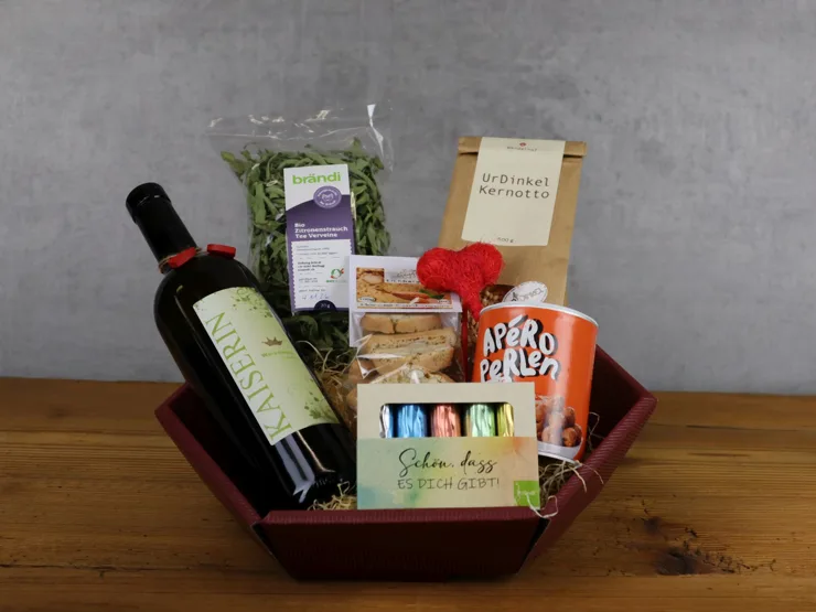 Kaiserin, Bio Tee Verveine, UrDinkel Kernotto, Mandel-Cantuccini, Apéro-Perlen, Schoggistängeli