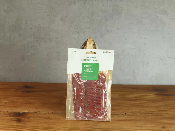 Zutaten *Rindfleisch, Nitritpökelsalz (Kochsalz, Konservierungsstoff: Natriumnitrit), Kochsalz, *Dextrose, *Gewürze, Meersalz, *Acerolapulver (*Maltodextrin) * = aus kontrollierter biologischer Erzeugung
