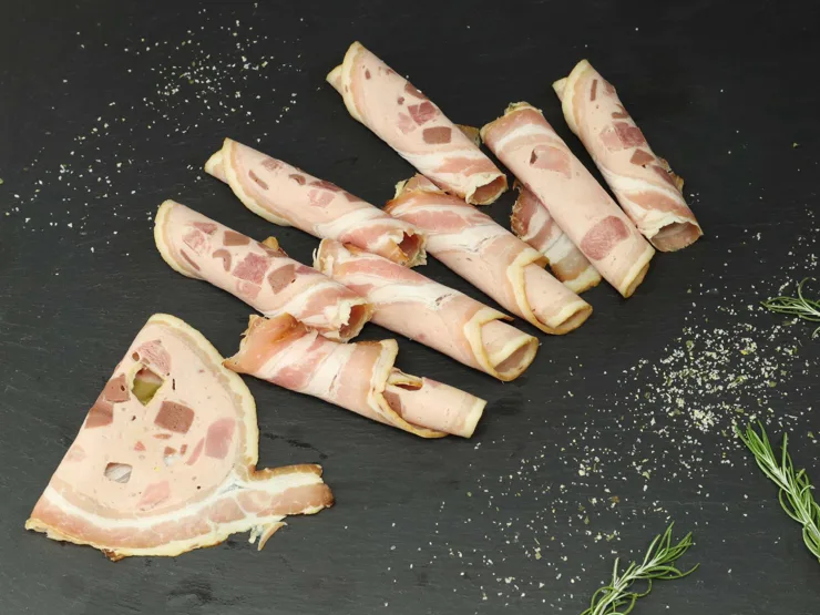 Die Schweinsbrust ist ein beliebtes Stück, es zeichnet sich durch seinen saftigen Geschmack und seiner zarten Textur aus. Dieser besondere Aufschnit ist eine Mischung aus verschiedenen Fleischsorten und Wurstsorten. Ausgewählte Gewürze und eine sorgfältige Zubereitung machen den Aufschnitt zu einer köstlichen Delikatesse.