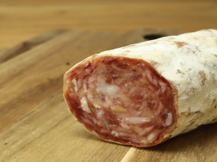Das Fleisch für die Salami stammt von dem Weideschwein aus Beromünster, der Sbrinz wird der Käserei Sage produziert und dies wird zusammen in der Metzgerei Haas in St. Urban miteinander verarbeitet.