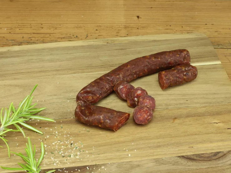 Wollschweinfleisch, Nitritpökelmeersalz, Gewürze, Kräuter, Gewürzextrakt, Maltodextrin, Dextrose, Speisesalz, Antioxidant