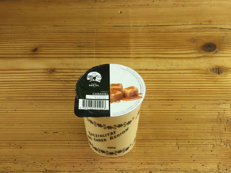 Das Caramelljoghurt ist aus silofreier Vollmilch und präsentiert sich in fein abgestimmter Konsistenz.