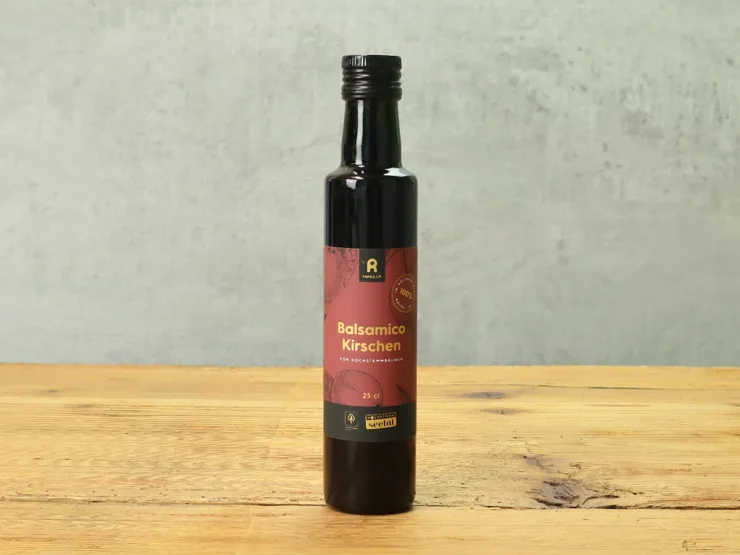 Balsamessig aus 100 % Kirschensaft. Ohne Konservierungs- und Verdickungsmittel, ohne Sulfite. Säure: 42g/l