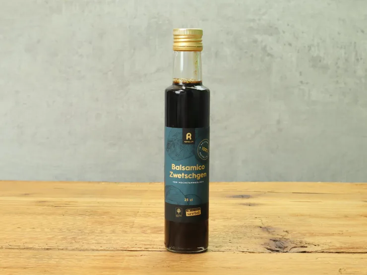 Balsamessig aus 100 % Zwetschgensaft. Ohne Konservierungs- und Verdickungsmittel, ohne Sulfite. Säure: 42g/l