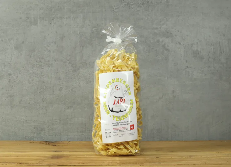 Ausschliesslich Schweizer Hartweizenmehl/griess (CH) Hofeigene Freilandeier 24%, Wasser, Zitronen, Kochsalz, Sonnenblumenöl